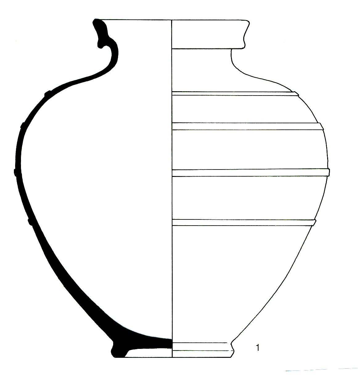 anse s'attachant sur le haut du col et sur le haut de la panse ; céramique tournée, pâte de couleur