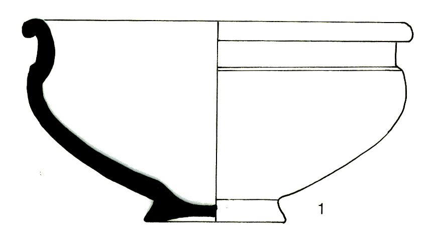 lèvre ronde ; base élargie, assise concave ; céramique tournée, pâte de couleur grise, noire en surface ;