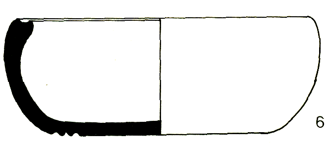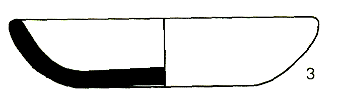 base étirée, assise plane ; céramique tournée, pâte de couleur noire, jaunâtre en surface ;