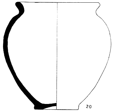 collerette s'attachant sur le haut de la panse ; céramique tournée, pâte de couleur orangée, noire en surface ;