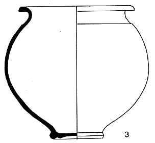 Pot de forme sphérique ; encolure rentrante, concave, rebord épaissi à l'extérieur, lèvre convexe ;